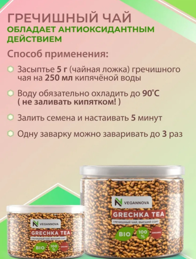 Заваривать гречишный чай просто: достаточно одной-двух чайных ложек гранул залить 250 мл горячей воды (90 градусов) и настоять 3-4 минуты. В результате вы получите насыщенный по вкусу напиток, содержащий более 20 витаминов и микроэлементов в одной чашке.