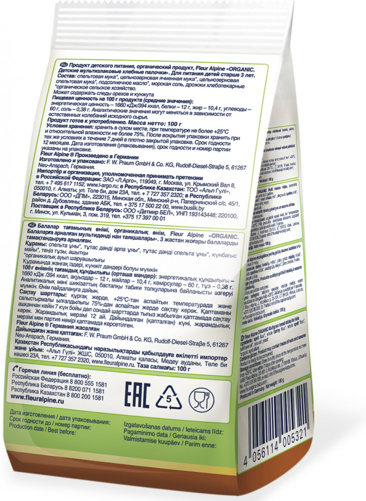 Fleur Alpine Хлебные палочки детские «Мультизлаковые»-25% +19