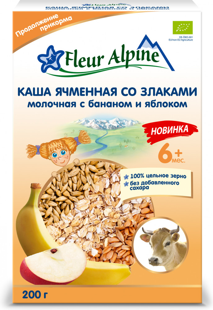 | Fleur Alpine Каша ячменная со злаками с бананом и яблоком+49 (бонусов)
