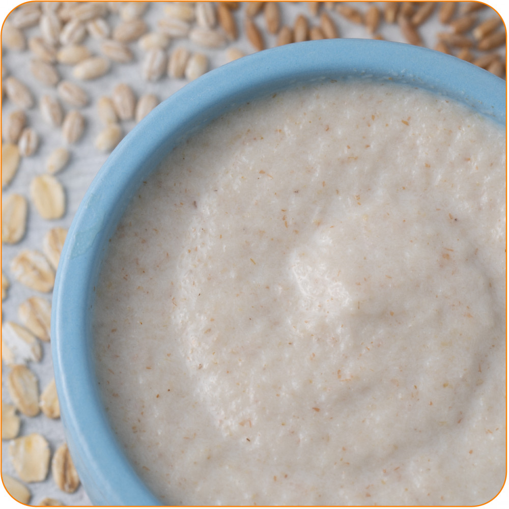 Ячменная каша со злаками, с бананом и яблоком идеально подходит для продолжения прикорма. Разводится легко, быстро и без комочков. Нежная, воздушная консистенция готовой каши в виде «сугробиков» напоминает снег, который ложится на поверхность небольшими пышными неровностями.