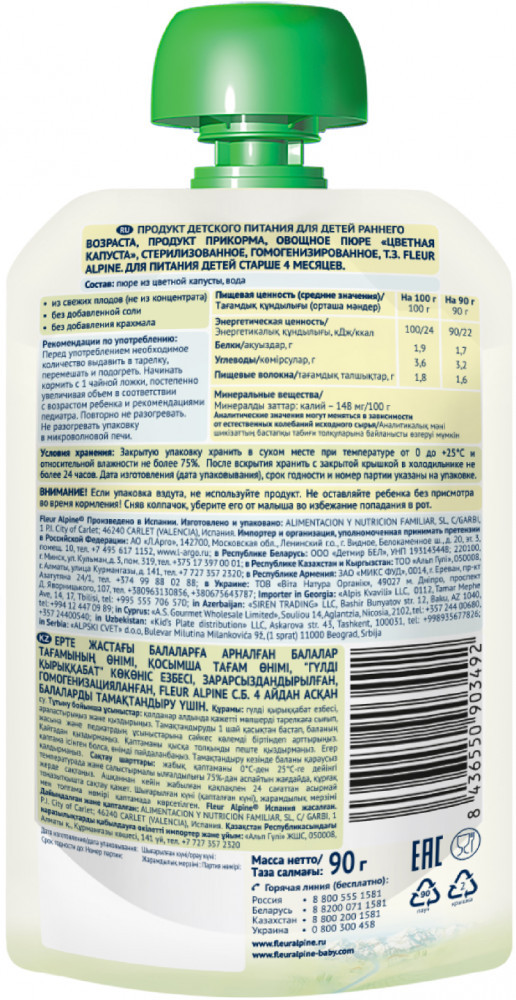 Fleur Alpine Пюре детское овощное «Цветная капуста»