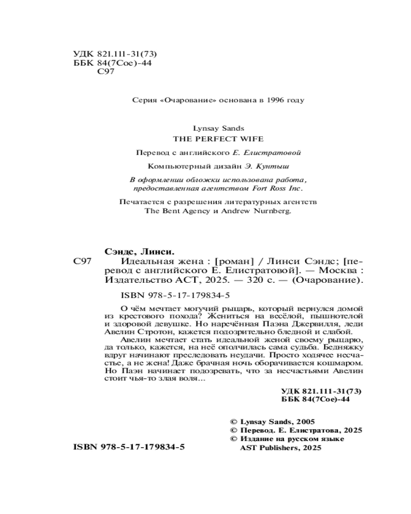 💳 Оплатить за товар можно при получении 🇰🇿 Есть бесплатная доставка по Казахстану от 1 дня 🎁 Копите бонусы с каждой покупки Серия: Очарование О чём мечтает могучий рыцарь, который вернулся домой из крестового похода? Жениться на весёлой, пышнотелой и здоровой девушке. Но наречённая Паэна Джервилля, леди Авелин Стротон, кажется подозрительно бледной и слабой. |