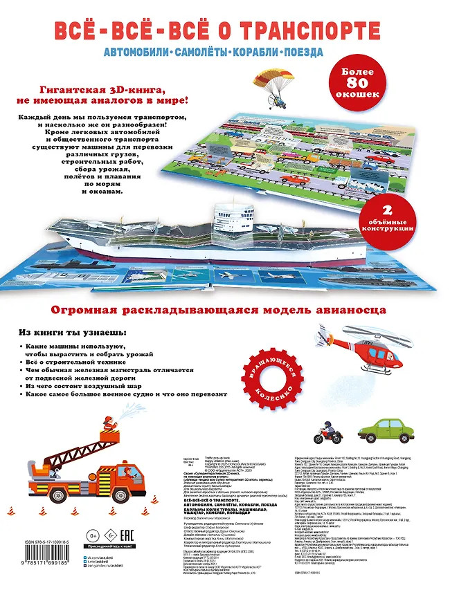 Всё-всё-всё о транспорте. Автомобили, самолёты, корабли, поездаВ данный момент этот товар отсутствует в продаже. Возможно, у нас найдется аналогичный или похожий товар здесь. Серия: Суперинтерактивная 3D-книга, не имеющая аналогов в мире Гигантская 3D-книга, не имеющая аналогов в мире! Каждый день мы пользуемся транспортом, и насколько же он разнообразен! Кроме легковых автомобилей и общественного транспорта существуют машины для перевозки различных грузов, строительных работ, сбора урожая, полётов и плавания по морям и океанам. |