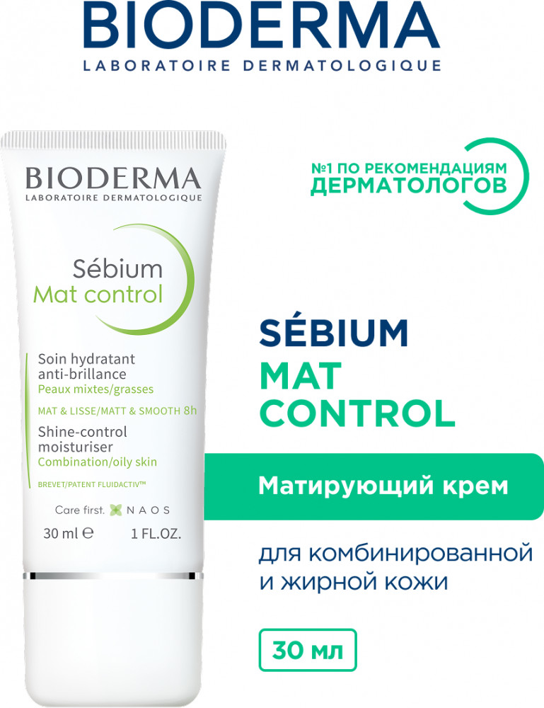 Bioderma Увлажняющий матирующий крем для жирной кожи «Mat Control»