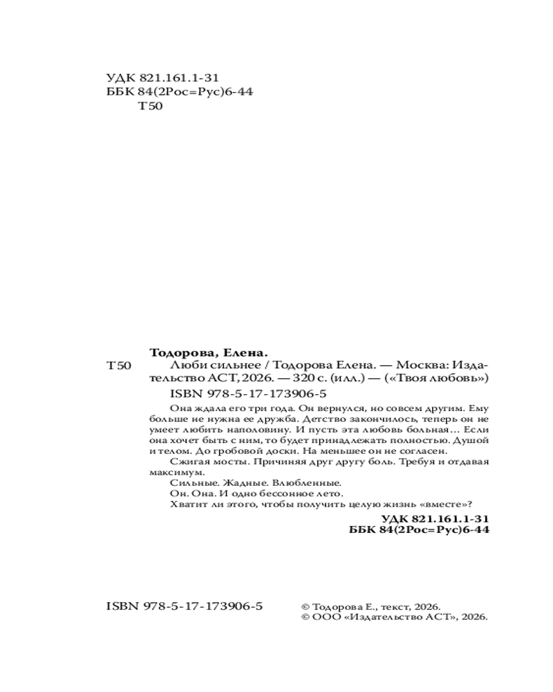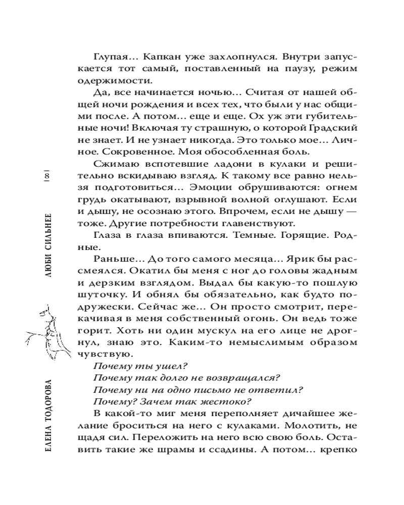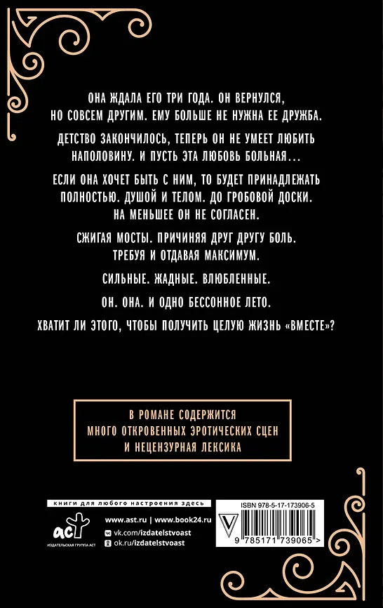 💳 Оплатить за товар можно при получении 🇰🇿 Есть бесплатная доставка по Казахстану от 1 дня 🎁 Копите бонусы с каждой покупки Серия: Твоя любовь Она ждала его три года. Он вернулся, но совсем другим. Ему больше не нужна ее дружба. Детство закончилось, теперь он не умеет любить наполовину. И пусть эта любовь больная… Если она хочет быть с ним, то будет принадлежать полностью. Душой и телом. До гробовой доски. На меньшее он не согласен. Сжигая мосты. Причиняя друг другу боль. Требуя и отдавая максимум. Сильные. Жадные. Влюбленные. Он. Она. И одно бессонное лето. Хватит ли этого, чтобы получить целую жизнь «вместе»? |