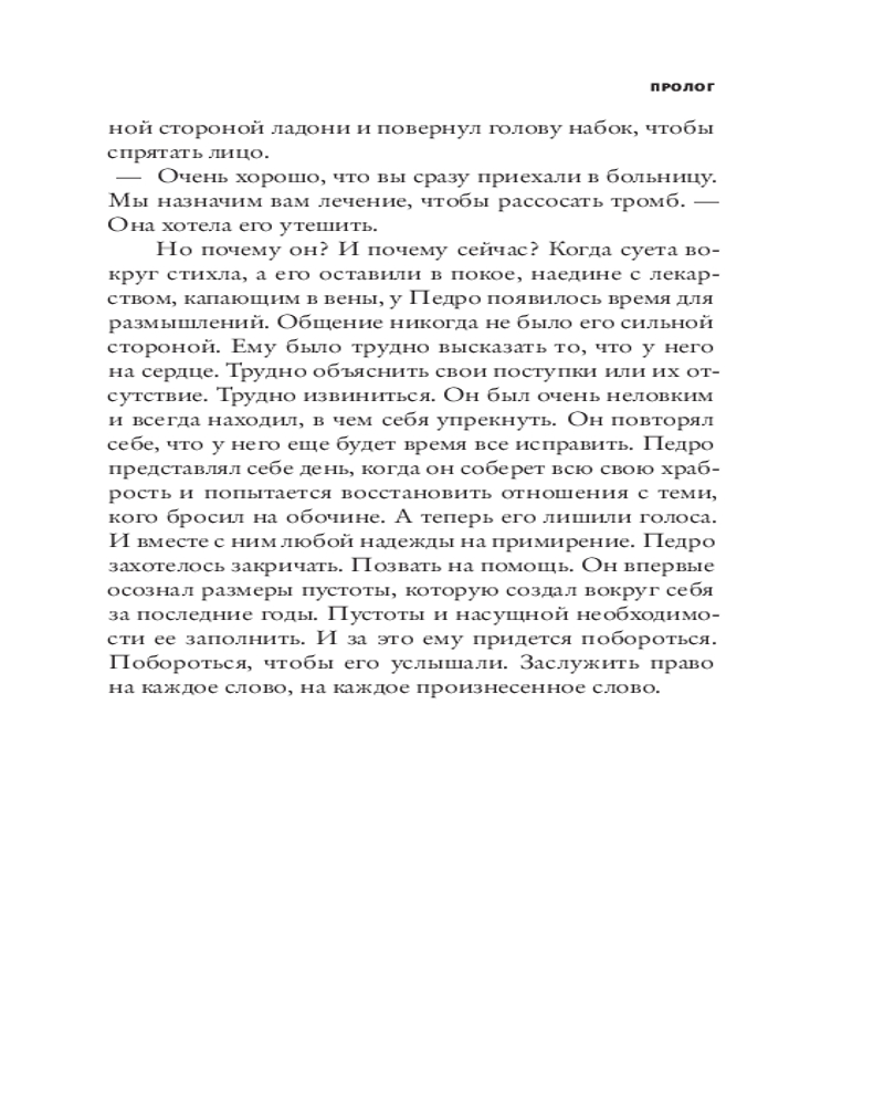 💳 Оплатить за товар можно при получении 🇰🇿 Есть бесплатная доставка по Казахстану от 1 дня 🎁 Копите бонусы с каждой покупки Серия: Corpus.(roman) Сара не случайно выбрала профессию медсестры. Только в заботе о тех, кто нуждается в помощи, она чувствует себя на своем месте. Когда ее отчим Педро после инсульта потерял способность говорить, Сара решила, что станет его голосом. Девушка отправляется в бретонскую деревушку, где живет первая жена Педро, а затем — в Лиссабон, куда перебрался его старший сын, писатель Томаш. Ее цель — попытаться помирить между собой людей, которые после болезненного разрыва перестали слышать друг друга. Ледяное безразличие, с каким ее встречает Томаш, до сих пор не простивший отца, огорчает Сару, но не обескураживает ее, твердо настроенную добиться своего. Найдет ли она нужные слова, чтобы выразить всю любовь, переполняющую сердце умолкнувшего отца к сыну? |