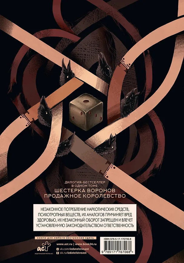💳 Оплатить за товар можно при получении 🇰🇿 Есть бесплатная доставка по Казахстану от 1 дня 🎁 Копите бонусы с каждой покупки Серия: Миры Ли Бардуго. Grishaverse Каз Бреккер никогда не снимает черных перчаток. Но если не хочешь стать ужином для акул, не спрашивай его, почему. Никому не известно, где его семья, откуда он пришел и почему остался в Кеттердаме. Зато он знает обо всех и всё. Бреккер — правая рука главаря одной из самых влиятельных банд в городе. Казино, бордели, нелегальная торговля — его стихия. А еще шантаж, грабеж и, если понадобится, хладнокровное убийство. Но всё это мелочи по сравнению с новым заказом. На кону — баснословные деньги и... секрет, который может уничтожить одни народы и возвеличить другие. Какие именно — теперь зависит от Каза и его команды. Шестерых «воронов», которым нечего терять, кроме надежды. Это дело объединит их. Лучшего стрелка банды Отбросов и новичка, который не умеет держать пистолет в руках. Соблазнительную чародейку, умеющую с помощью магии взрывать сердца, и безжалостного охотника на таких, как она. Юную гимнастку из самого известного публичного дома во всей Керчии и Каза Бреккера, способного без тени сомнения вырвать глаз предателю. Им предстоит один путь, но у каждого своя цель... |