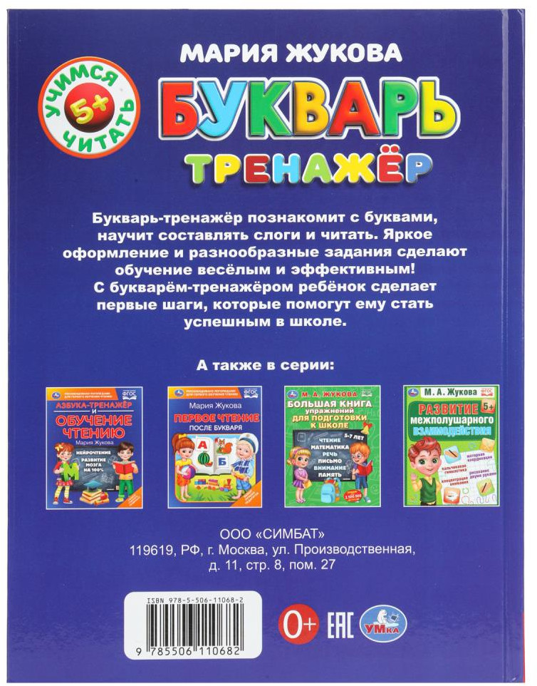 💳 Оплатить за товар можно при получении 🇰🇿 Есть бесплатная доставка по Казахстану от 1 дня 🎁 Копите бонусы с каждой покупки Книга для чтения «М. А. Жукова. Букварь-тренажёр» непременно понравится вашему ребёнку. Букварь-тренажёр познакомит с буквами, научит составлять слоги и читать. Яркое оформление и разнообразные задания сделают обучение весёлым и эффективным! С букварём-тренажёром ребёнок сделает первые шаги, которые помогут ему стать успешным в школе. |