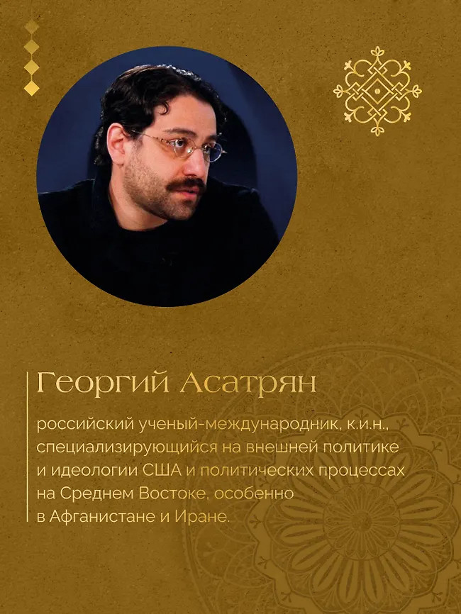 | Кандидат исторических наук, научный сотрудник отдела Азии и Африки Института научной информации по общественным наукам РАН. Эксперт клуба «Валдай» и РСМД, специалист в области международных отношений. Также с 2024 года работает научным сотрудником факультета мировой экономики и мировой политики Института мировой военной экономики и стратегии Национального исследовательского университета «Высшая школа экономики» (НИУ ВШЭ). Ещё Асатрян Г. Э. — доцент факультета мировой политики МГУ имени М. В.... |