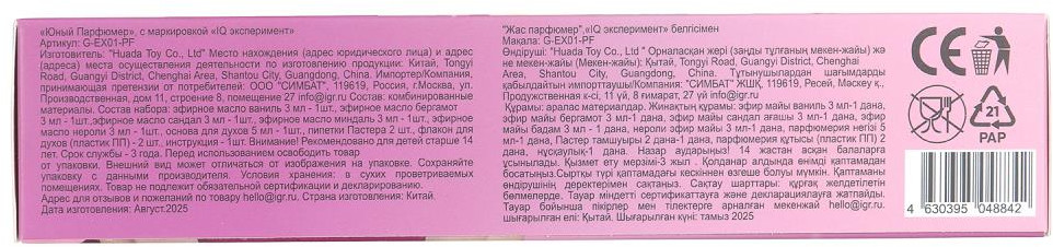💳 Оплатить за товар можно при получении 🇰🇿 Есть бесплатная доставка по Казахстану от 1 дня 🎁 Копите бонусы с каждой покупки Набор экспериментов для девочек «Парфюмер» ТМ «IQ Эксперимент» поможет создать свой неповторимый аромат. Этот набор экспериментов для девочек — это увлекательное путешествие в мир ароматов, которое позволит юной исследовательнице создать свой неповторимый парфюм. С таким набором девочка не только весело проведёт время, но и узнает много интересного о секретах составления парфюмерных композиций, потренирует чувство вкуса и научится сочетать разные запахи. Подробная инструкция проведёт шаг за шагом проведёт через весь процесс создания духов, сделав эксперименты не только увлекательными, но и абсолютно безопасными. Девочка сможет смешивать разные масла, экспериментировать с пропорциями и находить идеальные сочетания, раскрывая свой творческий потенциал. Красочная подарочная упаковка делает этот набор отличным выбором для подарка. |