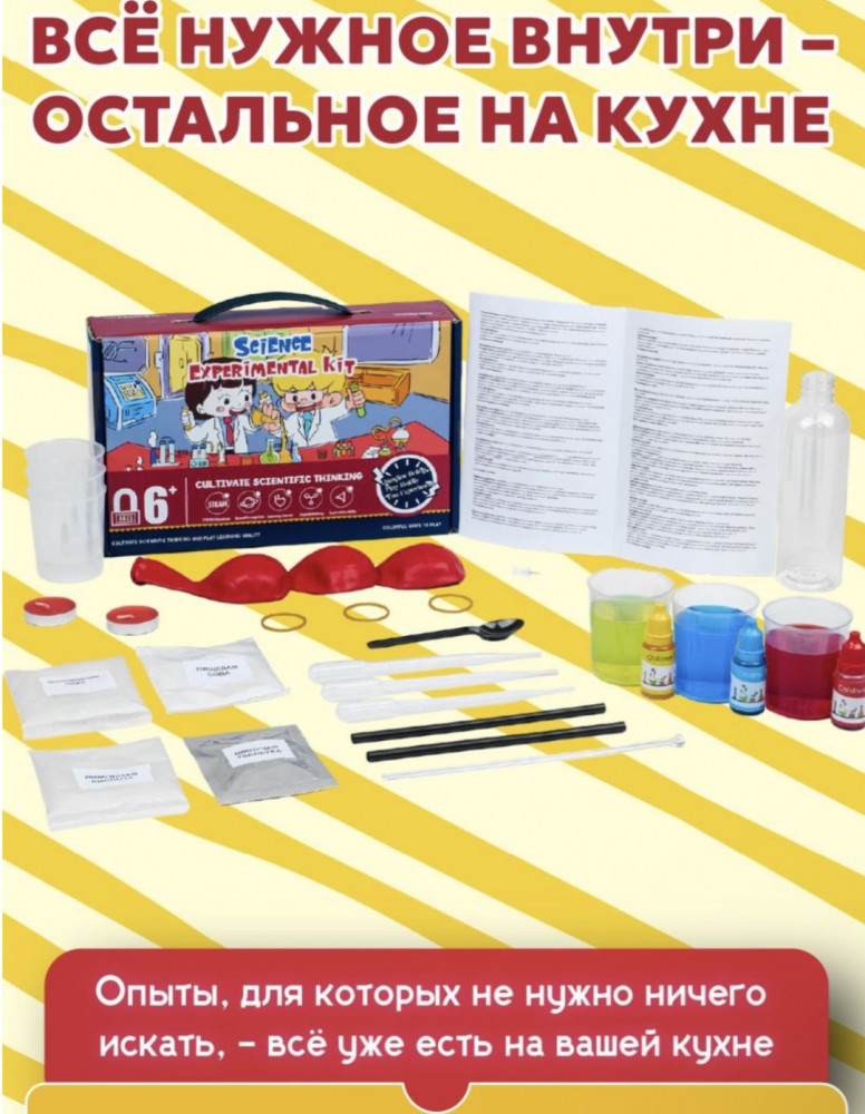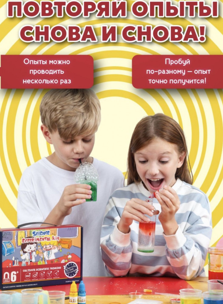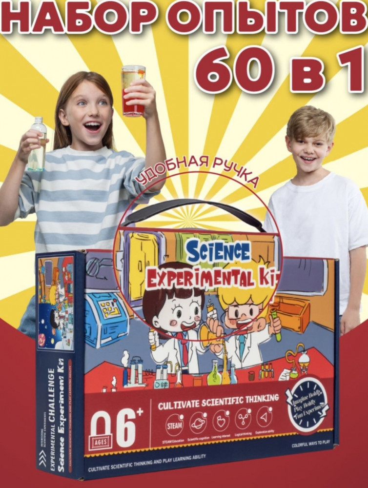 💳 Оплатить за товар можно при получении 🇰🇿 Есть бесплатная доставка по Казахстану от 1 дня 🎁 Копите бонусы с каждой покупки Хотите, чтобы ребёнок отвлёкся от гаджетов и с пользой проводил время? Комбо-набор опытов 60 в 1 — это большая домашняя лаборатория, в которой дети изучают химию и физику через практику, без скучных формул. Набор помогает развивать логику, мышление, фантазию и креативность. Все эксперименты выполнены в формате «сделай сам» и подходят для самостоятельных занятий или совместного времени с родителями. Подходит для мальчиков и девочек от 8 лет. Используется дома, в школах, кружках и детских садах. |