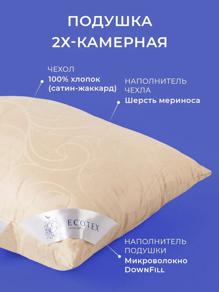 Ecotex Подушка «Меринос» (микроволокно DownFill, 68х68 см)-50% +90 мягкая легкая приятная качество