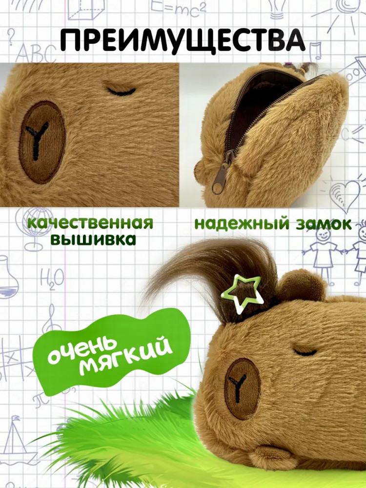 Пенал-косметичка плюшевый «Милая капибара с волосами»-25% +30