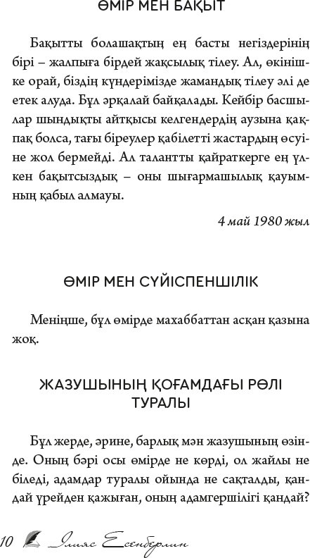 | Есенберлин Ильяс — казахский писатель. Родился в 1915 году в городе Атбасаре Акмолинской области. Его детство и молодость совпали с печально известными событиями 20–30 годов, когда весь народ пережил социальные потрясения, нищету, голод. Для Ильяса этот удар был вдвойне ощутим, так как он рано, в пять лет, остался круглым сиротой. Ильяса отдали в детский дом. Уже там будущий писатель писал стихи для стенгазет. После окончания начальной школы Ильяс уехал в Кзыл-Орду и стал учиться в... |