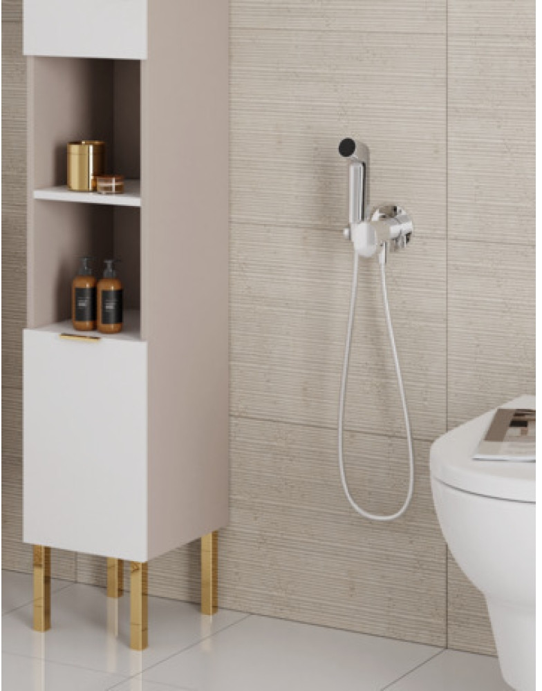 Диаметр душевого диска составляет 28 мм. При давлении в 3 бара максимальный расход воды достигает 5 литров в минуту. Для предотвращения перекручивания душевого шланга используется упорный подшипник, расположенный со стороны душа. Шланг имеет коническую гайку на обоих концах и оснащен клапаном обратного тока воды. Настенное крепление выполнено из хромированного металла и устанавливается с помощью шурупов. Также предусмотрена система промываемого грязеулавливающего фильтра.