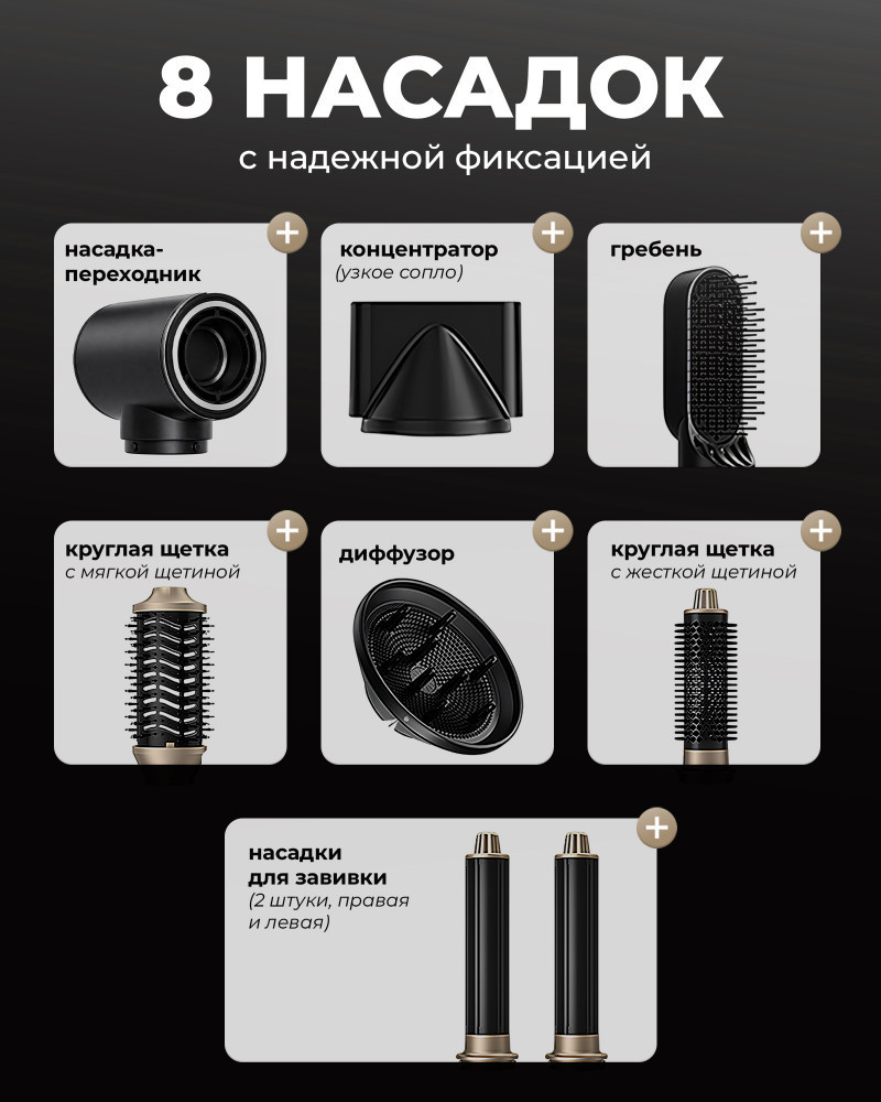Фен-стайлер STL 8 в 1 — оптимальный выбор для тех, кто ищет универсальный фен для укладки волос, профессиональный стайлер для дома и удобное решение для ежедневного ухода за причёской. Прибор подойдёт как для самостоятельного использования, так и в качестве подарка, сочетая функциональность, компактность и салонный результат без лишних устройств. |