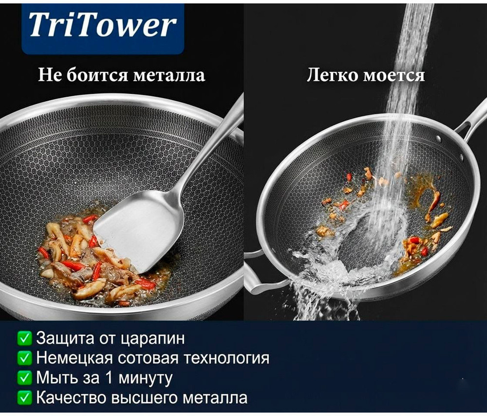 TriTower Сковорода с сотовым покрытием с прозрачной крышкой