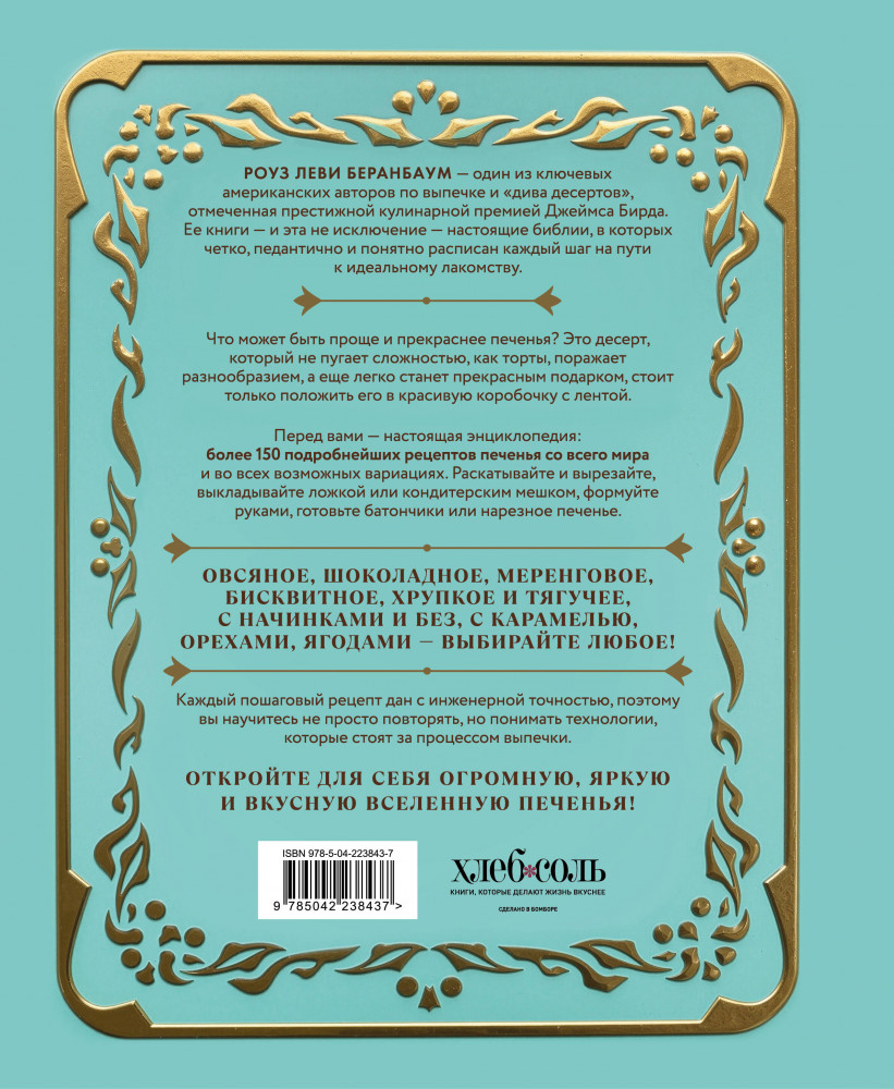💳 Оплатить за товар можно при получении 🇰🇿 Есть бесплатная доставка по Казахстану от 1 дня 🎁 Копите бонусы с каждой покупки Серия: Кулинария. Домашний кондитер Ищете идеальный подарок для того, кто обожает печенье? Или хотите стать автором всех лучших рецептов на семейных праздниках? Перед вами настоящая энциклопедия печенья от легендарного американского кондитера Роуз Леви Бернбаум. Роскошное коллекционное издание с обложкой в виде жестяной коробки с металлизированным эффектом, которое настраивает на кулинарное творчество с первого взгляда. Но это не просто книга. Это ультимативный гид по всевозможным видам печенья: от домашнего овсяного до изысканных французских макарон, от праздничных имбирных человечков до изысканных батончиков, достойных кондитерской. Каждый рецепт выверен до мелочей, многократно проверен, дан с подробными инструкциями и профессиональными секретами. |
