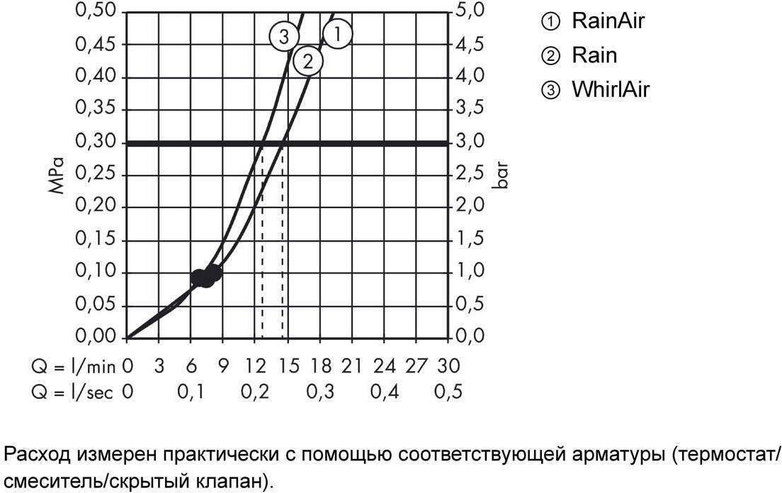 • тип струи: RainAir, Rain, Whirl;