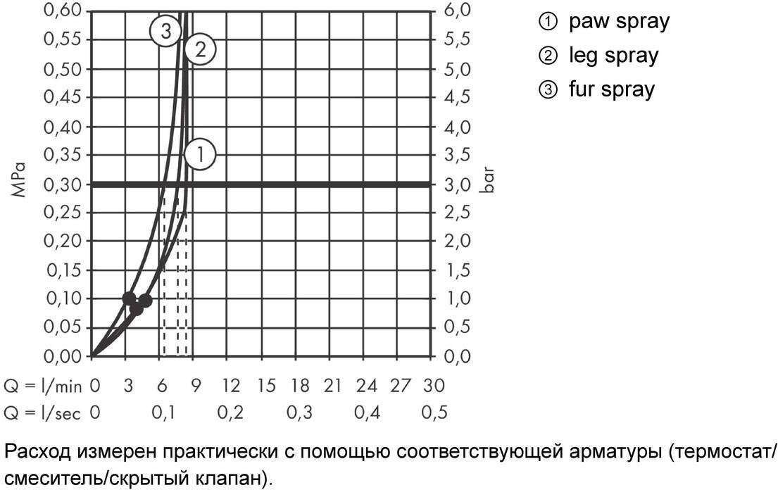 Hansgrohe DogShower 150 3jet с массажной струей — специализированный душ для ухода за собаками, обеспечивающий комфорт и эффективность мытья. Размер душевого диска составляет 150×63 мм. Типы струи: струя для шерсти, струя для ног, paw spray, переключение между ними осуществляется удобно с помощью кнопки Select. Максимальный расход воды при 3 барах — 7,6 л/мин, минимальный расход для корректной работы — 5,7 л/мин. Рабочее давление: 1–6 бар, минимальное давление — 1 бар. Форсунки для мягкой массажной струи имеют длину 1,5 см, что обеспечивает деликатный и эффективный уход за шерстью питомца. Эргономичный дизайн облегчает использование, душ подходит для проточных водонагревателей. Соединение DN15, встроенный клапан обратного тока предотвращает обратное поступление воды.