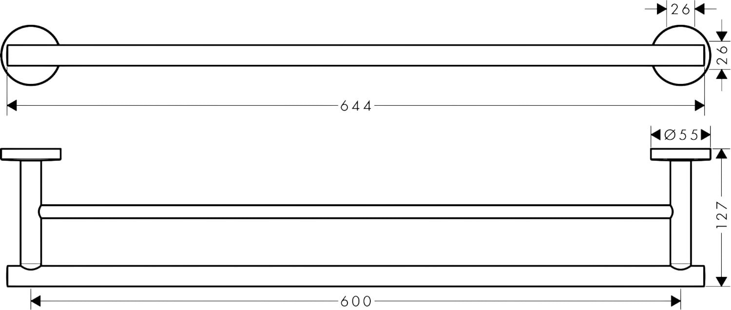 Его длина составляет 644 мм, что обеспечивает достаточное пространство для размещения полотенец. Этот держатель для банного полотенца из коллекции Logis Universal от Hansgrohe является практичным и эстетичным дополнением для вашей ванной комнаты.