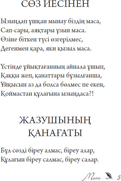 💳 Оплатить за товар можно при получении 🇰🇿 Есть бесплатная доставка по Казахстану от 1 дня 🎁 Копите бонусы с каждой покупки Ахмет Байтұрсынұлының «Маса» атты өлеңдер жинағы – ХХ ғасыр басындағы қазақ қоғамының оянуына, рухани жаңғыруына зор ықпал еткен әдеби туынды. Бұл жинақта автор ұйқыда жатқан халқын оятуды мақсат етіп, ел ішіндегі әлеуметтік теңсіздік, надандық, отарлық езгі мәселелерін көтереді. «Маса» – тек өлеңдер жинағы емес, ұлттың санасына сәуле түсірген рухани үндеу. |