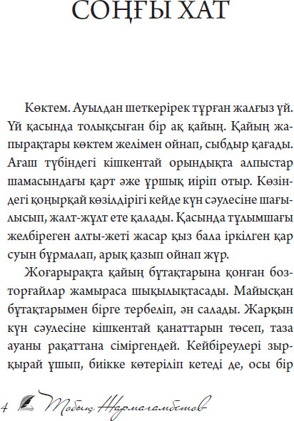💳 Оплатить за товар можно при получении 🇰🇿 Есть бесплатная доставка по Казахстану от 1 дня 🎁 Копите бонусы с каждой покупки «Соңғы хат» – Тобық Жармағамбетовтің бұрын жарияланбаған повестері мен әңгімелерінен құралған жинақ. Шығармаларда соғыс пен бейбіт өмір тоғысындағы адамгершілік, бауырмалдық, сағыныш пен адалдық секілді тақырыптар терең суреттеледі. «Соңғы хат» әңгімесінде шейіт болған досының отбасына хат жазуды жалғастырған жауынгердің жан тебірентерлік оқиғасы арқылы рухани адалдық көрініс табады. Жинақ – ұлттық құндылықтар мен моральдық биіктікті дәріптейтін тағылымды туынды. |