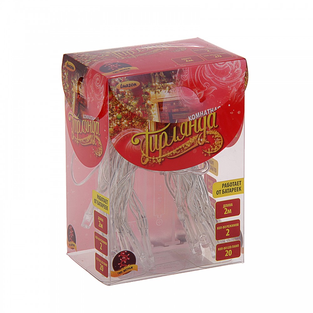Luazon Гирлянда «Метраж» 2 м, LED-20-3,6V, мультицвет-25% +54 насыщенные цвета декоративный эффект на батарейках режимы свечения силиконовый провод