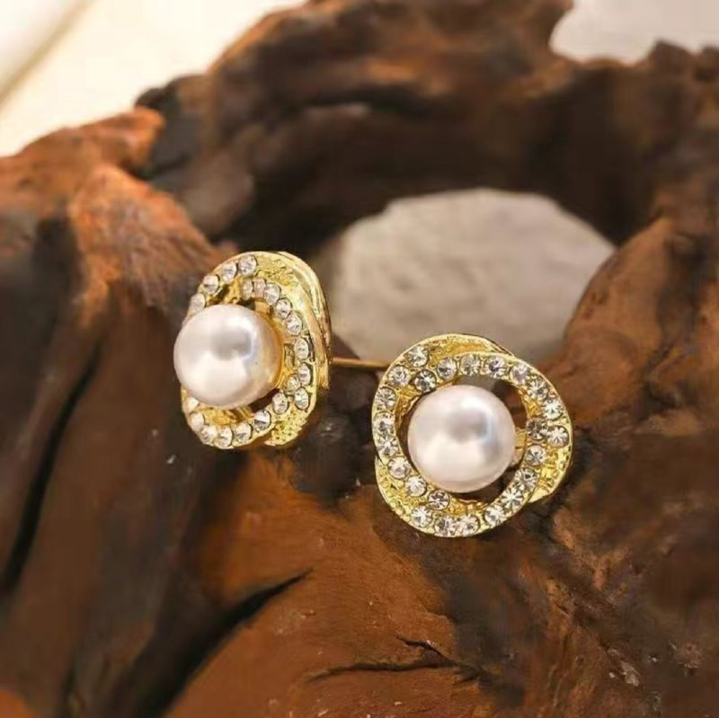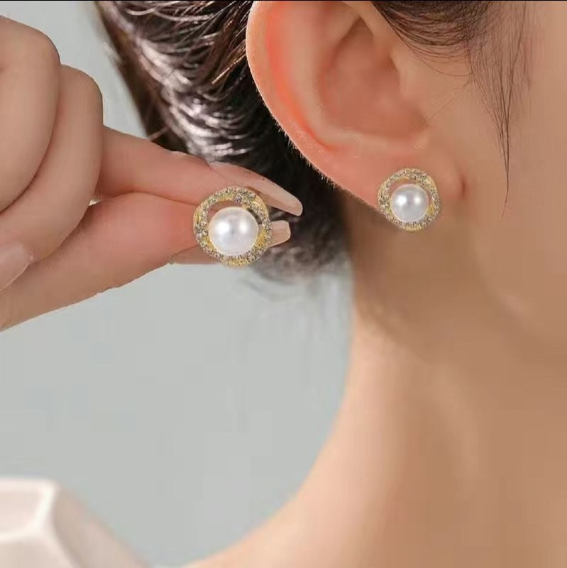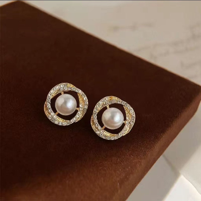 Серьги-пусеты с жемчугом и кристаллами