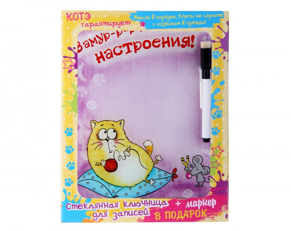 Люблю эту серию с Котэ. Ключница стеклянная, на ней можно рисовать маркером. Хорошо поднимает настроение)