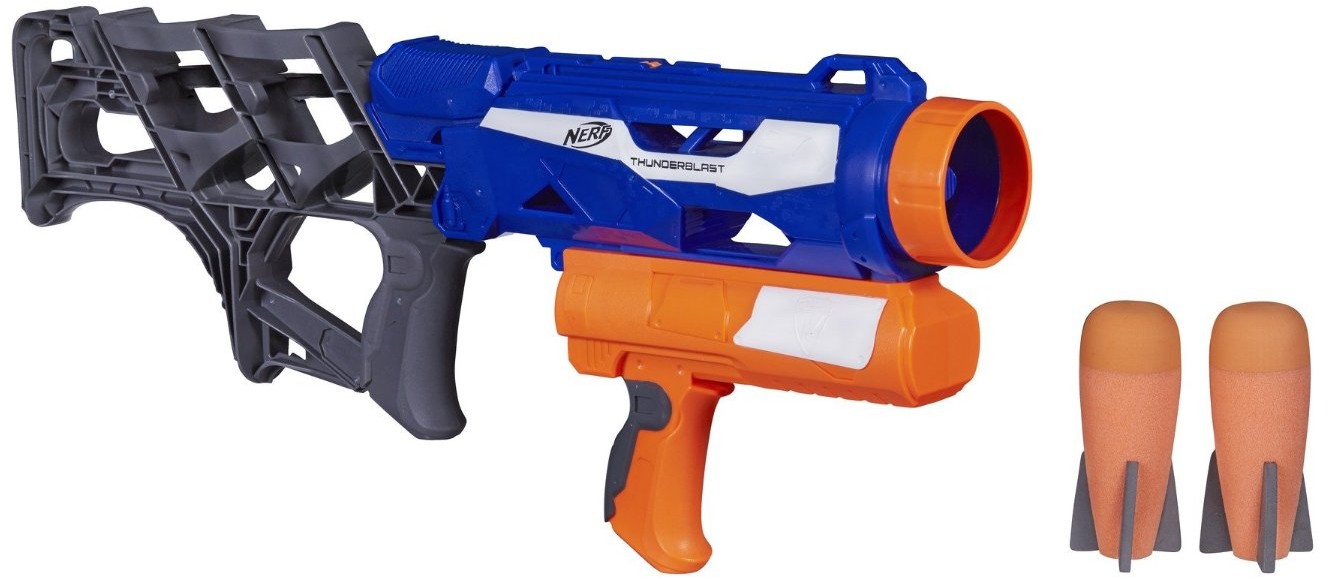 Игра с «Ракетницей» диктует совершенно иной стиль и другую стратегию стрельбы. Если вы уже хорошо владеете обычными бластерами, то Thunderblast сможет открыть для вас совершенно новые горизонты. В комплекте помимо бластера есть два снаряда-ракеты.