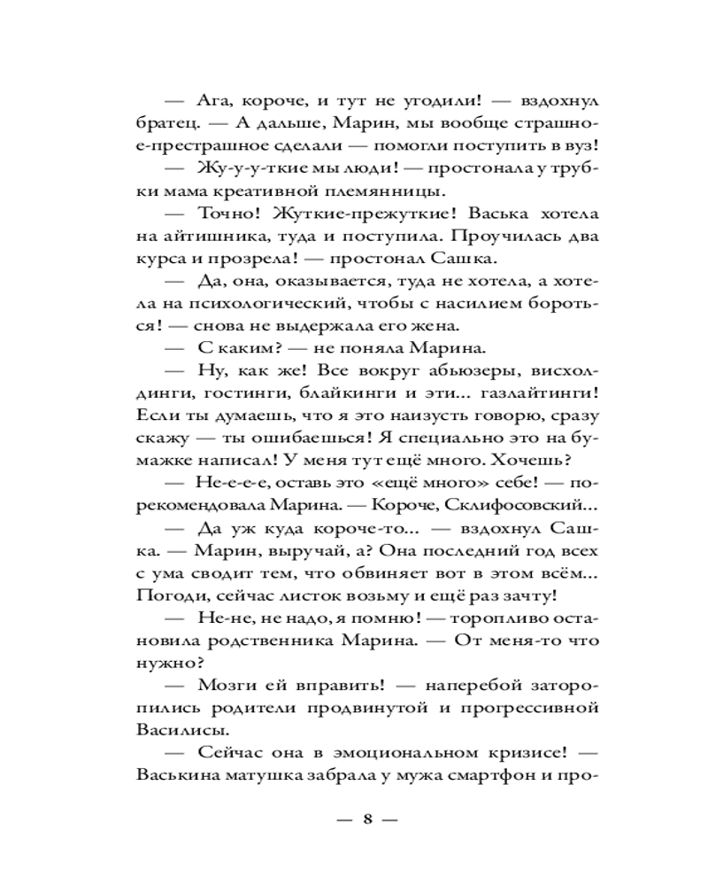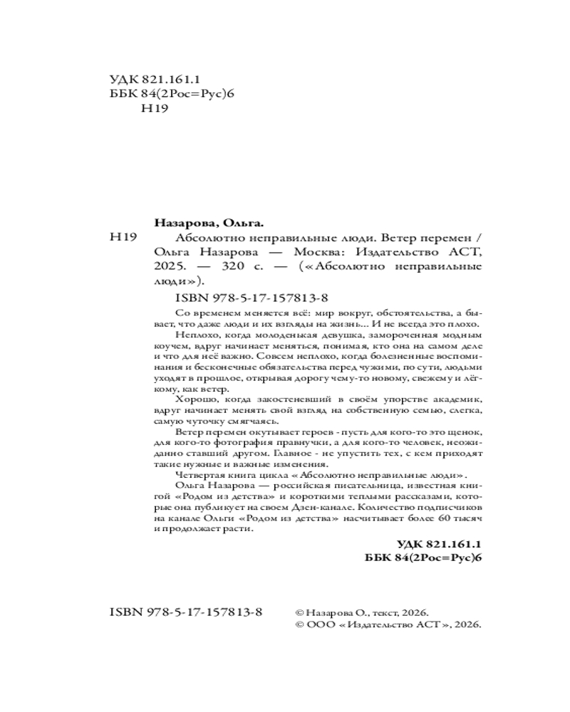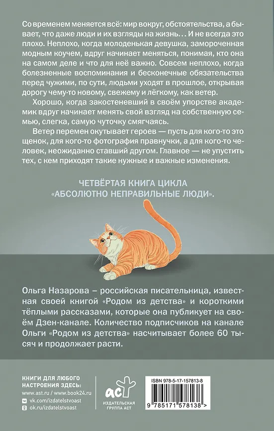 💳 Оплатить за товар можно при получении 🇰🇿 Есть бесплатная доставка по Казахстану от 1 дня 🎁 Копите бонусы с каждой покупки Серия: Абсолютно неправильные люди Со временем меняется всё: мир вокруг, обстоятельства, а бывает, что даже люди и их взгляды на жизнь… И не всегда это плохо. Неплохо, когда молоденькая девушка, замороченная модным коучем, вдруг начинает меняться, понимая, кто она на самом деле и что для неё важно. Совсем неплохо, когда болезненные воспоминания и бесконечные обязательства перед чужими, по сути, людьми уходят в прошлое, открывая дорогу чему-то новому, свежему и лёгкому, как ветер. Хорошо, когда закостеневший в своём упорстве академик вдруг начинает менять свой взгляд на собственную семью, слегка, самую чуточку смягчаясь. |