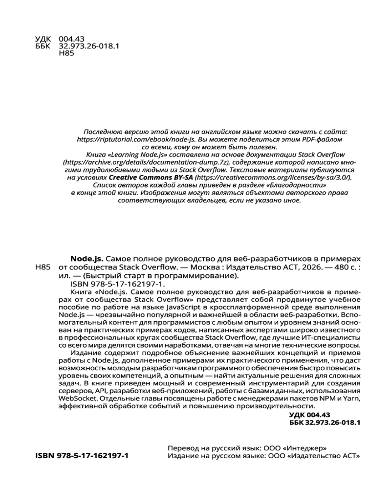 💳 Оплатить за товар можно при получении 🇰🇿 Есть бесплатная доставка по Казахстану от 1 дня 🎁 Копите бонусы с каждой покупки Серия: Программирование от экспертов Перед вами нечто гораздо большее, чем просто пособие по веб-разработке. Данное издание — это практическое руководство по работе в широко распространенной кроссплатформенной среде выполнения Node.js, в основе которой лежит язык программирования JavaScript. Благодаря ему начинающие программисты смогут быстро поднять свой уровень профессиональных знаний в области создания серверов, API, разработки веб-приложений, работы с базами данных и менеджерами пакетов NPM и Yarn, а также использования WebSocket. |