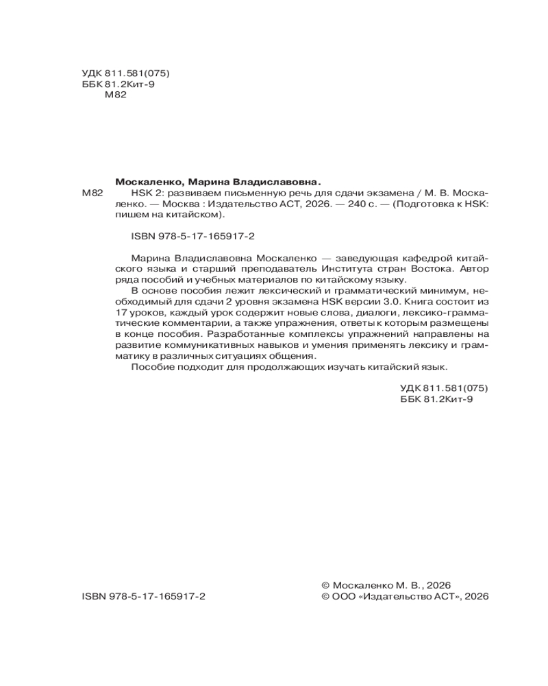 HSK 2. Развиваем письменную речь для сдачи экзаменаМарина Владиславовна Москаленко +37