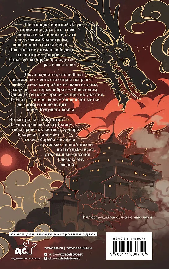 💳 Оплатить за товар можно при получении 🇰🇿 Есть бесплатная доставка по Казахстану от 1 дня 🎁 Копите бонусы с каждой покупки Серия: Хиты молодежного эпического фэнтези. Стражи свитка Шестнадцатилетний Джун стремится доказать свою ценность как воина и стать следующим Хранителем волшебного свитка Небес. Для этого ему нужно победить на элитном турнире Стражей, который проводится раз в шесть лет. |