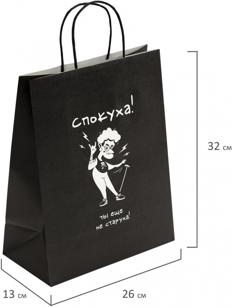💳 Оплатить за товар можно при получении 🇰🇿 Есть бесплатная доставка по Казахстану от 1 дня 🎁 Копите бонусы с каждой покупки Подарочный пакет «Ещё не старуха» Золотая сказка — отличное решение для упаковки любого презента, которое позволит с легкостью и со вкусом оформить выбранный подарок.Подарочный пакет из крафтовой бумаги — идеальное решение для вашего праздника! Благодаря плотности 150 г/м2 пакет надежно удерживает свою форму и защищает содержимое, сохраняя ваш подарок в идеальном состоянии. |