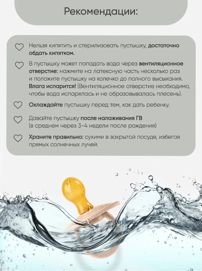 💳 Оплатить за товар можно при получении 🇰🇿 Есть бесплатная доставка по Казахстану от 1 дня 🎁 Копите бонусы с каждой покупки Пустышка 0-6 из латекса от Paomma для вас! Разработана с учетом анатомических особенностей новорожденных, способствует правильному формированию прикуса. Изготовлена из природного материала и не вызывает аллергических реакций. Обеспечивает максимальный комфорт и безопасность с первых дней жизни (не содержит BPA). Станет незаменимым помощником для родителей и надежным другом ребенку. Имеет круглую естественную форму «вишня» и идеально подходит к нёбу. Пластиковая часть не соприкасается с ротиком малыша и ограждает от раздражений. Соска для младенца имитирует форму и мягкость материнской груди, поэтому детки принимают её сразу и успокаиваются. В каждой пустышке есть специальные вентиляционные отверстия: при сосании, пустышка сжимается и принимает форму рта ребенка. Именно поэтому каждая пустышка является ортодонтически безопасной. Классическая — является вневременной и элегантной. Разработана для максимального удовлетворения сосательного рефлекса, помогая успокоить и убаюкать. Соска-пустышка латексная 0 от Paomma подарит вашему ребенку комфорт и спокойствие. Поможет детям заснуть и чувствовать себя в безопасности. |