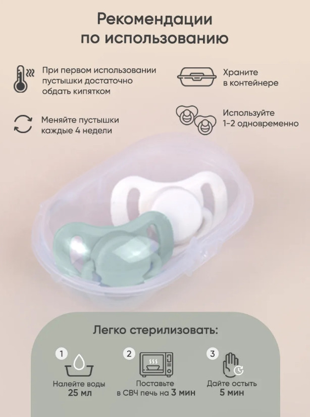 💳 Оплатить за товар можно при получении 🇰🇿 Есть бесплатная доставка по Казахстану от 1 дня 🎁 Копите бонусы с каждой покупки Набор силиконовых сосок-пустышек 6-18 месяцев - отличный подарок новорождённому. Соска пустышка имеет анатомическую форму диска, специальные вентиляционные отверстия на пустышке, что улучшает циркуляцию воздуха и не раздражают кожу малыша. Не оставляют следов и опрелостей. Создана для удовлетворения естественного сосательного рефлекса у малышей. Пустышка анатомической формы "капля" имеет немного сплюснутый сосок, благодаря чему прилегает к языку. Анатомическая форма ослабляет давление на небо и челюсть. Способствует правильному формированию прикуса и препятствует заглатыванию воздуха. Не впитывает запахи, не деформируется. Можно стерилизовать и кипятить. Не содержит бисфенол А. |