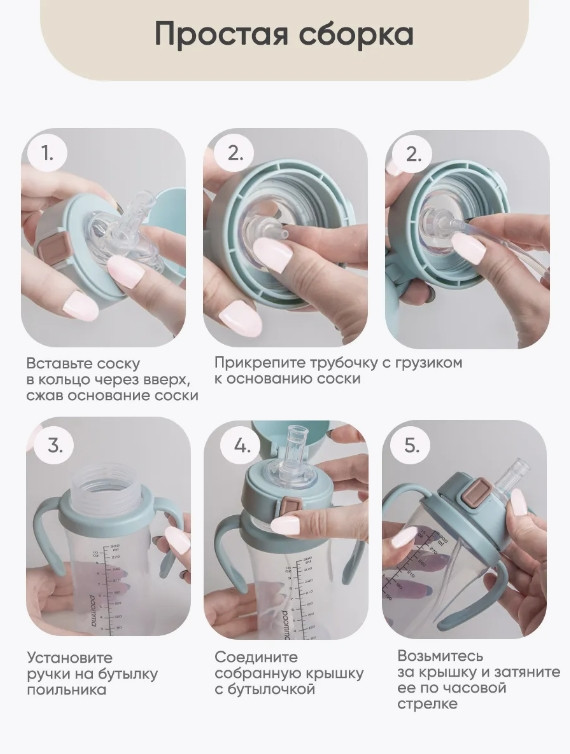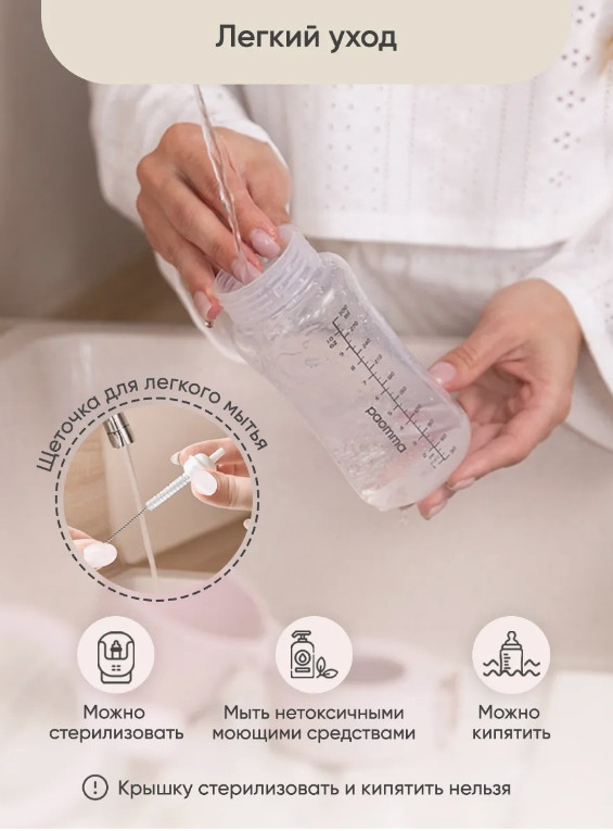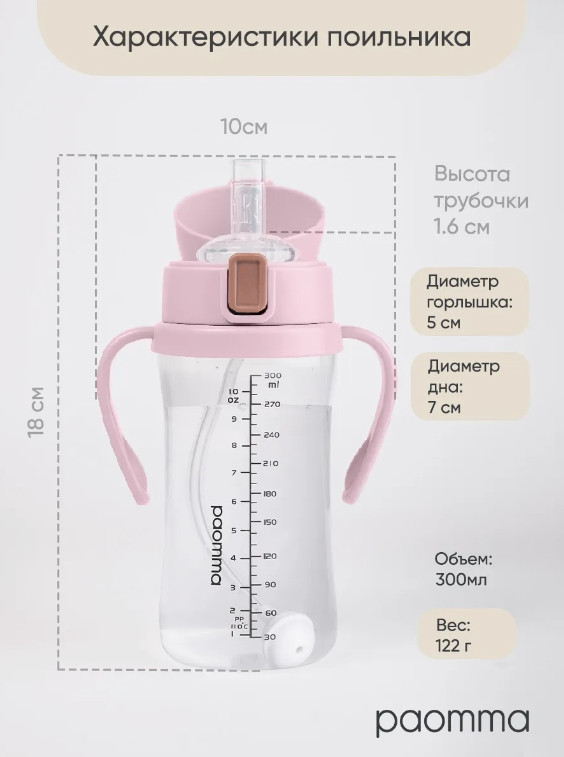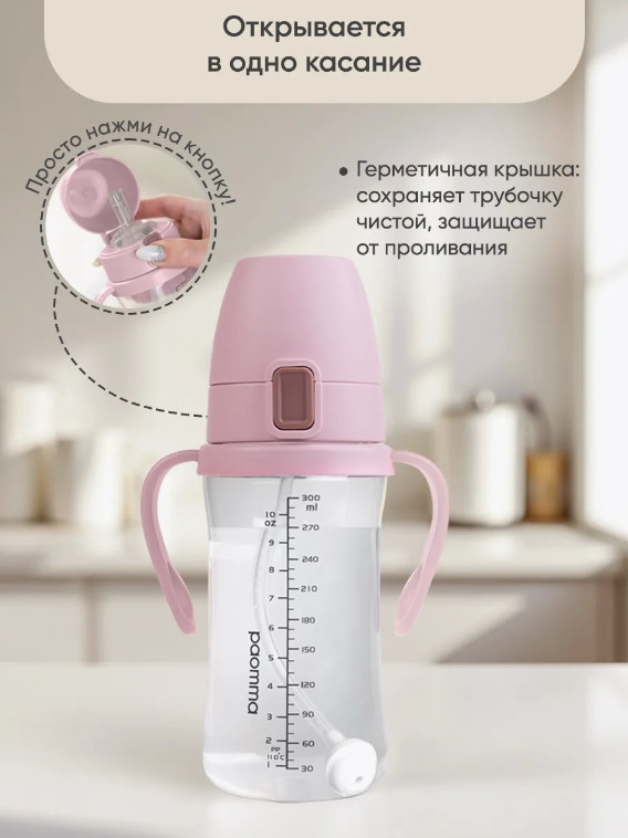 💳 Оплатить за товар можно при получении 🇰🇿 Есть бесплатная доставка по Казахстану от 1 дня 🎁 Копите бонусы с каждой покупки Поильник для детей PAOMMA — это идеальное решение для плавного перехода к самостоятельному питью из трубочки. Он оснащён специальным защитным клапаном, который предотвращает случайное протекание жидкости, обеспечивая надёжность и удобство в использовании. Ярко-прорисованная шкала позволяет легко контролировать количество выпитой жидкости, что очень удобно для родителей. Поильник с трубочкой укомплектован антигравитационным грузиком, который дает возможность малышу пить под любым углом и в комфортном для него положении. Эта бутылочка с силиконовым носиком легко разбирается, что обеспечивает качественную очистку всех уголков и частей в идеальном состоянии. Съемные ручки фиксируются в удобном для ребенка положении, а матовое покрытие и изогнутая форма обеспечивают надежный захват маленькими ручками. Изготовленный из пищевого пластика и не содержащий бисфенола А, этот детский поильник 6+ совершенно безопасен для здоровья малышей. Имеет эксклюзивный дизайн, лаконичный и сдержанный, в базовых стильных оттенках без рисунков. Прекрасно сочетается со всеми товарами Paomma. Наша бутылочка с трубочкой хорошо моется в посудомойке (при 45 градусах) или ее можно просто обдать кипятком. (Разрешается кипятить и стерилизовать без крышечки поильника до 5 минут). Благодаря надежной конструкции защищена от пыли и грязи, что позволяет использовать дома и на прогулках. Подходит для разных напитков! Поильник непроливайка с ручками прослужит вам долго и максимально комфортно для вашего ребенка. |