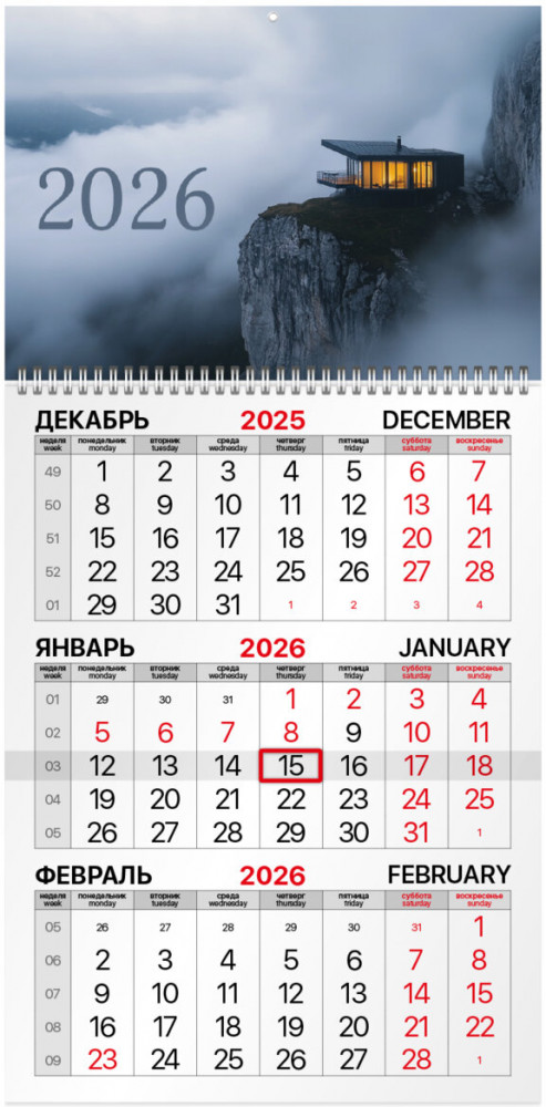 💳 Оплатить за товар можно при получении 🇰🇿 Есть бесплатная доставка по Казахстану от 1 дня 🎁 Копите бонусы с каждой покупки Квартальный календарь Brauberg «Шале на утесе» предназначен для делового планирования. Офисный календарь на 2026 год на гребне. Состоит из 1 блока с календарными сетками на три месяца — предыдущий, текущий и последующий. Блок календаря напечатан на мелованной бумаге плотностью 80 г/м2. Подложка изготовлена из мелованного картона плотностью 280 г/м2. Курсор-бегунок выделяет текущую дату. Вертикальный формат. Размер — 29.5×60 см. |