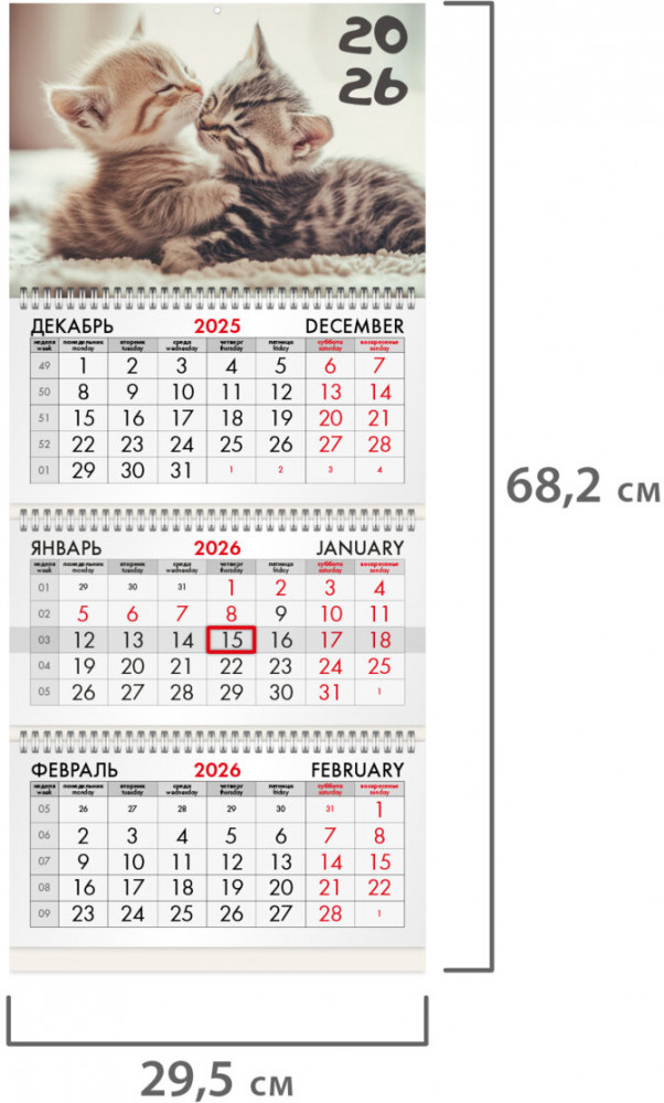 💳 Оплатить за товар можно при получении 🇰🇿 Есть бесплатная доставка по Казахстану от 1 дня 🎁 Копите бонусы с каждой покупки Квартальный календарь Brauberg «Милые котята» предназначен для делового планирования. Офисный календарь на 2026 год на 3 гребнях. Состоит из 3 блоков с календарными сетками на три месяца — предыдущий, текущий и последующий. Блок календаря напечатан на офсетной бумаге плотностью 65 г/м2. Подложка изготовлена из мелованного картона плотностью 235 г/м2. Курсор-бегунок выделяет текущую дату. Вертикальный формат. |