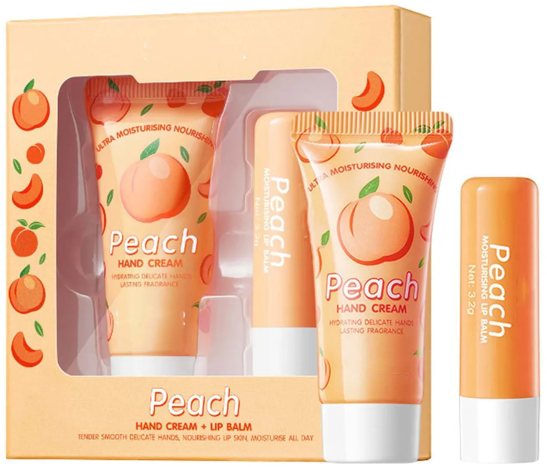 SADOER Подарочный набор 2 в 1 «Увлажняющий крем для рук и смягчающий бальзам для губ с экстрактом спелого персика Peach Hand Cream+Lip Balm»+13