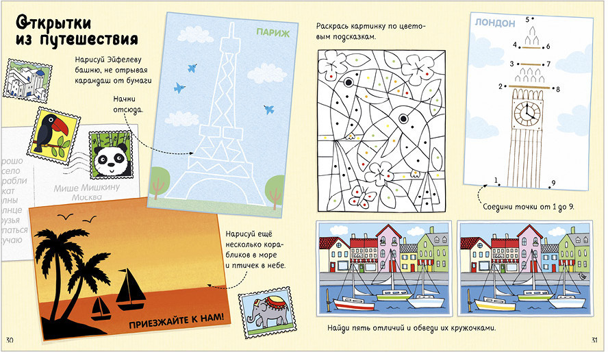 💳 Оплатить за товар можно при получении 🇰🇿 Есть бесплатная доставка по Казахстану от 1 дня 🎁 Копите бонусы с каждой покупки Эта книга для тех, кто ни дня не может прожить без приключений! Вас ждут заковыристые ребусы, математические загадки, увлекательные лабиринты, игры «найди и покажи», рисовалки. Что будет делать ваш малыш? Нарисует Эйфелеву башню, не отрывая карандаш от бумаги, раскрасит картинки по цветовым подсказкам, найдет след велосипедиста-воришки, поможет Саше найти билетик, а Пете — подружиться с Мариной. От такой красочной и познавательной тетрадки не оторваться! |
