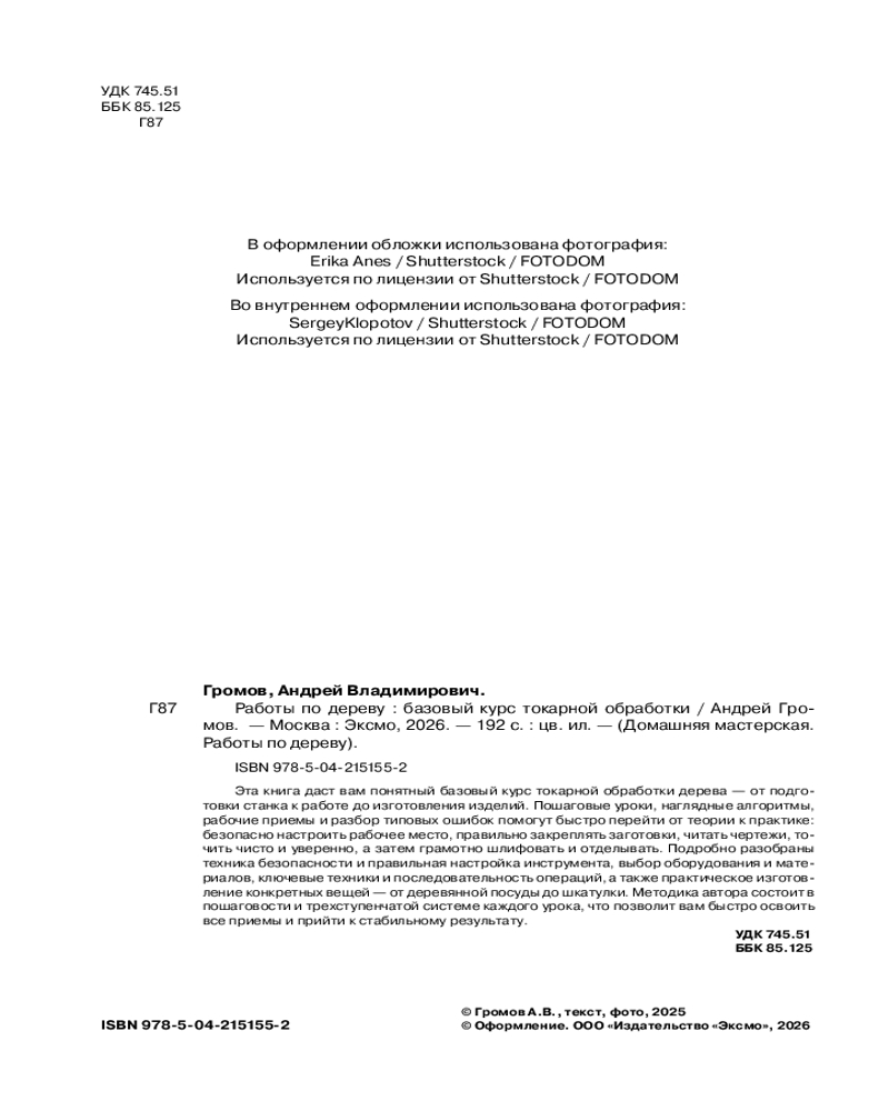 💳 Оплатить за товар можно при получении 🇰🇿 Есть бесплатная доставка по Казахстану от 1 дня 🎁 Копите бонусы с каждой покупки Серия: Домашняя мастерская. Работы по дереву Эта книга — понятный базовый курс по токарной обработке дерева: от подготовки станка к работе до изготовления изделий. Последовательные уроки, наглядные схемы, практические приёмы и разбор типичных ошибок помогут быстро перейти от теории к делу: безопасно организовать рабочее место, надёжно фиксировать заготовки, читать чертежи, выполнять чистый и уверенный рез, а затем грамотно шлифовать и отделывать. Методика автора основана на пошаговом подходе и трёхступенчатой структуре каждого урока, что позволит быстро освоить ключевые приёмы и выйти на стабильный качественный результат. |
