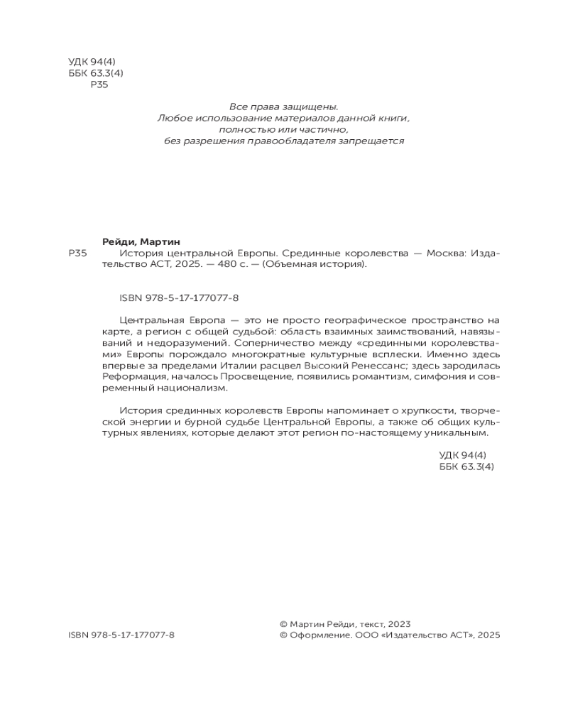 💳 Оплатить за товар можно при получении 🇰🇿 Есть бесплатная доставка по Казахстану от 1 дня 🎁 Копите бонусы с каждой покупки Серия: Объемная история Центральная Европа — это не просто географическое пространство на карте, а регион с общей судьбой: область взаимных заимствований, навязываний и недоразумений. Соперничество между «срединными королевствами» Европы порождало многократные культурные всплески. Именно здесь впервые за пределами Италии расцвел Высокий Ренессанс; здесь зародилась Реформация, началось Просвещение, появились романтизм, симфония и современный национализм. |