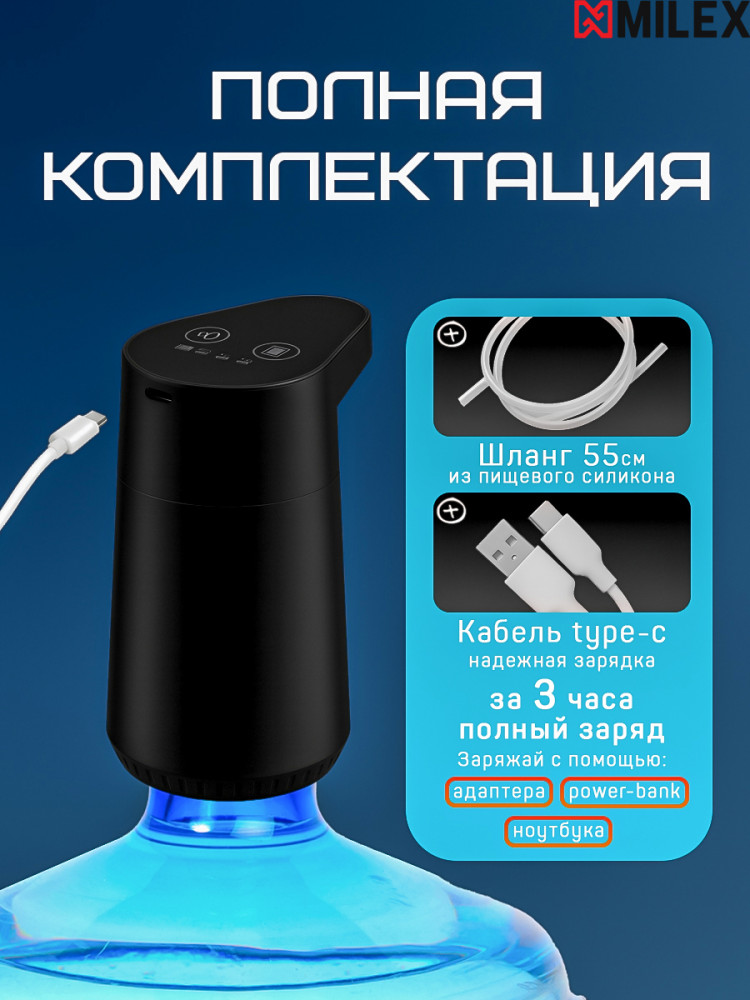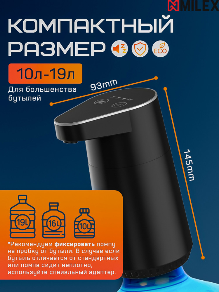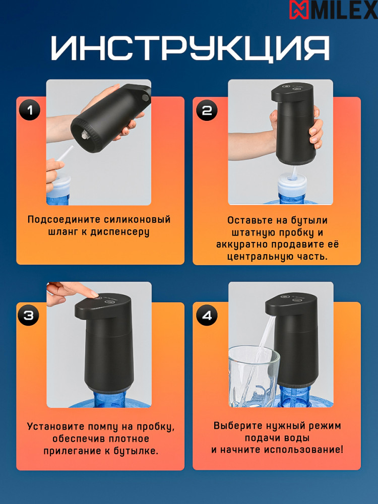 💳 Оплатить за товар можно при получении 🇰🇿 Есть бесплатная доставка по Казахстану от 1 дня 🎁 Копите бонусы с каждой покупки Автоматическая помпа для воды MIlex. Подходит для всех стандартных бутылей: 10, 16, 19 л (для нестандартных горлышек можно использовать адаптер). |