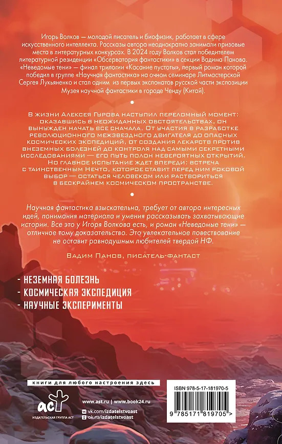 💳 Оплатить за товар можно при получении 🇰🇿 Есть бесплатная доставка по Казахстану от 1 дня 🎁 Копите бонусы с каждой покупки Серия: Nova Fiction. Лучшая русская НФ В жизни Алексея Гурова наступил переломный момент: оказавшись в неожиданных обстоятельствах, он вынужден начать все сначала. От участия в разработке революционного межзвездного двигателя до опасных космических экспедиций, от создания лекарств против внеземных болезней до контроля над самыми секретными исследованиями — его путь полон невероятных открытий. Но главное испытание ждет впереди: встреча с таинственным Нечто, которое ставит перед ним роковой выбор — остаться человеком или раствориться в бескрайнем космическом пространстве. |