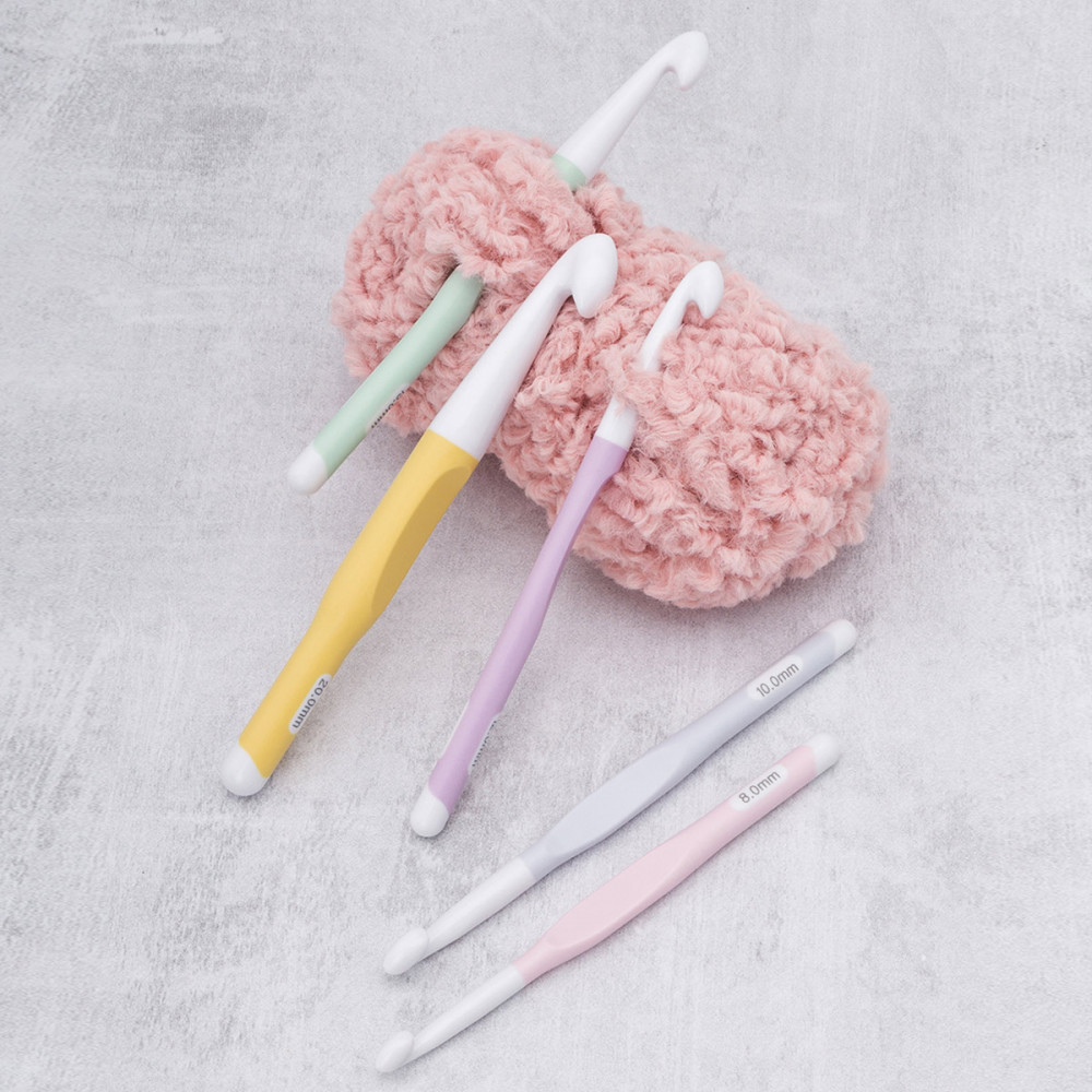 💳 Оплатить за товар можно при получении 🇰🇿 Есть бесплатная доставка по Казахстану от 1 дня 🎁 Копите бонусы с каждой покупки Крючки для вязания набор из легкого пластика с удобными силиконовыми ручками — прекрасный пример эргономичного и удобного инструмента, идеально подходящего как для опытных мастериц, так и для начинающих вязальщиц. В комплект входят крючки диаметром 8, 10, 12, 15 и 20 миллиметров — всё, что нужно для разнообразных творческих проектов. Размер нанесен на ручку крючка. У каждого размера — свой цвет. Такой набор станет прекрасным подарком для всех, кто увлекается рукоделием и вязанием. |