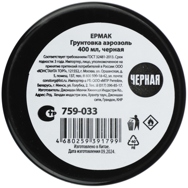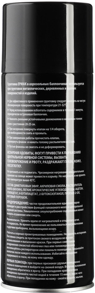 Грунтовка Ермак улучшает сцепление с наносимым покрытием адгезия, укрепляет основание, защищает от коррозии и выравнивает поверхность.диметиловый эфир, акриловая смола, растворитель нафта (бензин), легкие ароматические углеводороды, ацетон, этилацетат, н-бутилацетат, 2-бутоксиэтанол, пропан-2, матовый порошок.