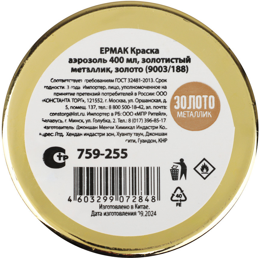 ЕРМАК Краска аэрозольная, 9001/37 золотистый металлик